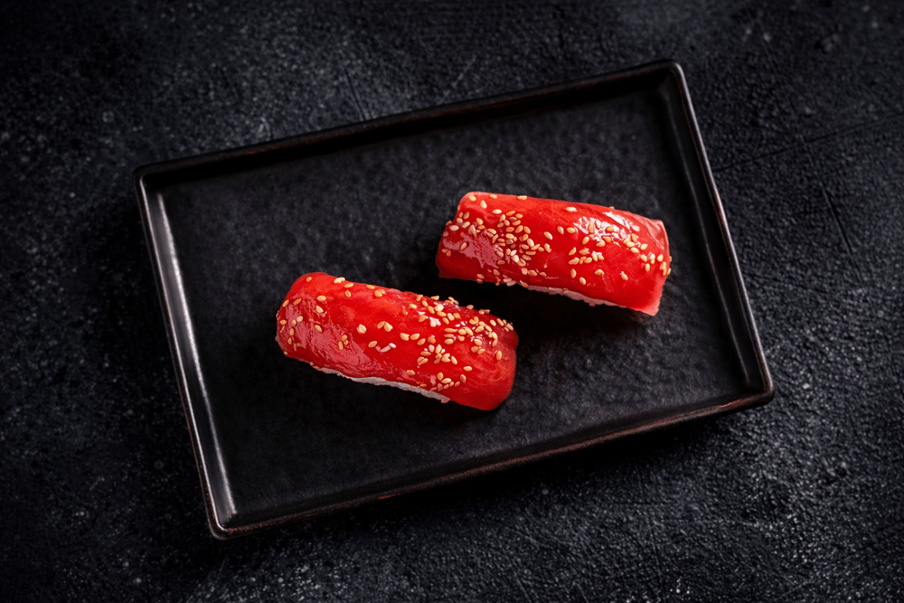Горячий ролл с креветками, острым тунцом и сливочным сыром