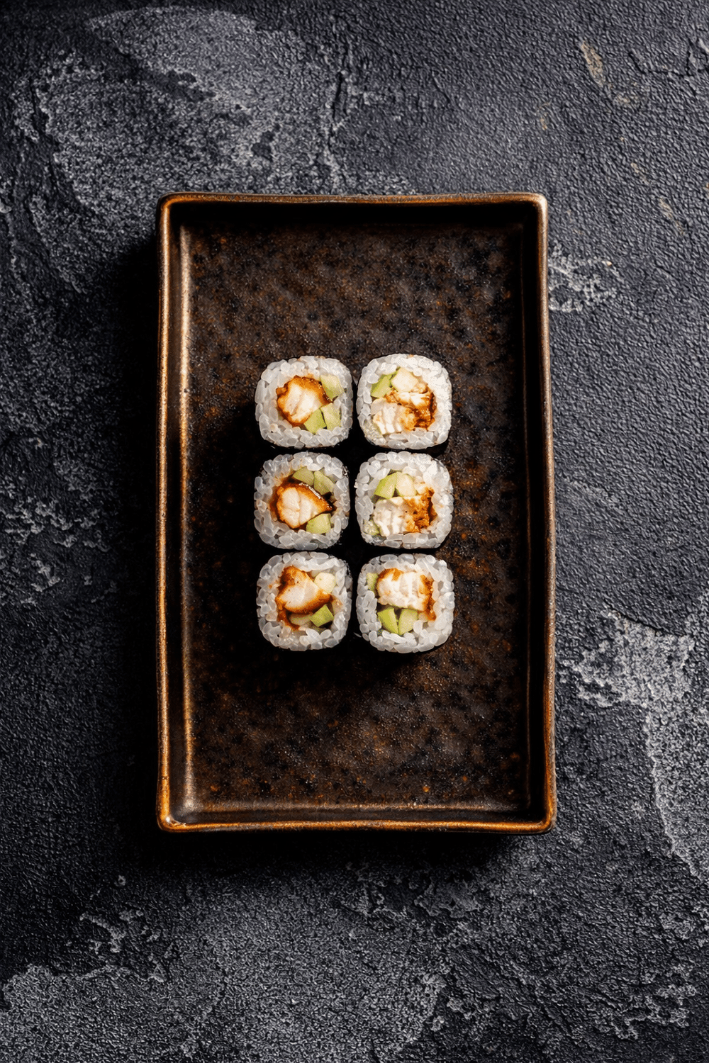 Ролл с угрем, острым тунцом и авокадо