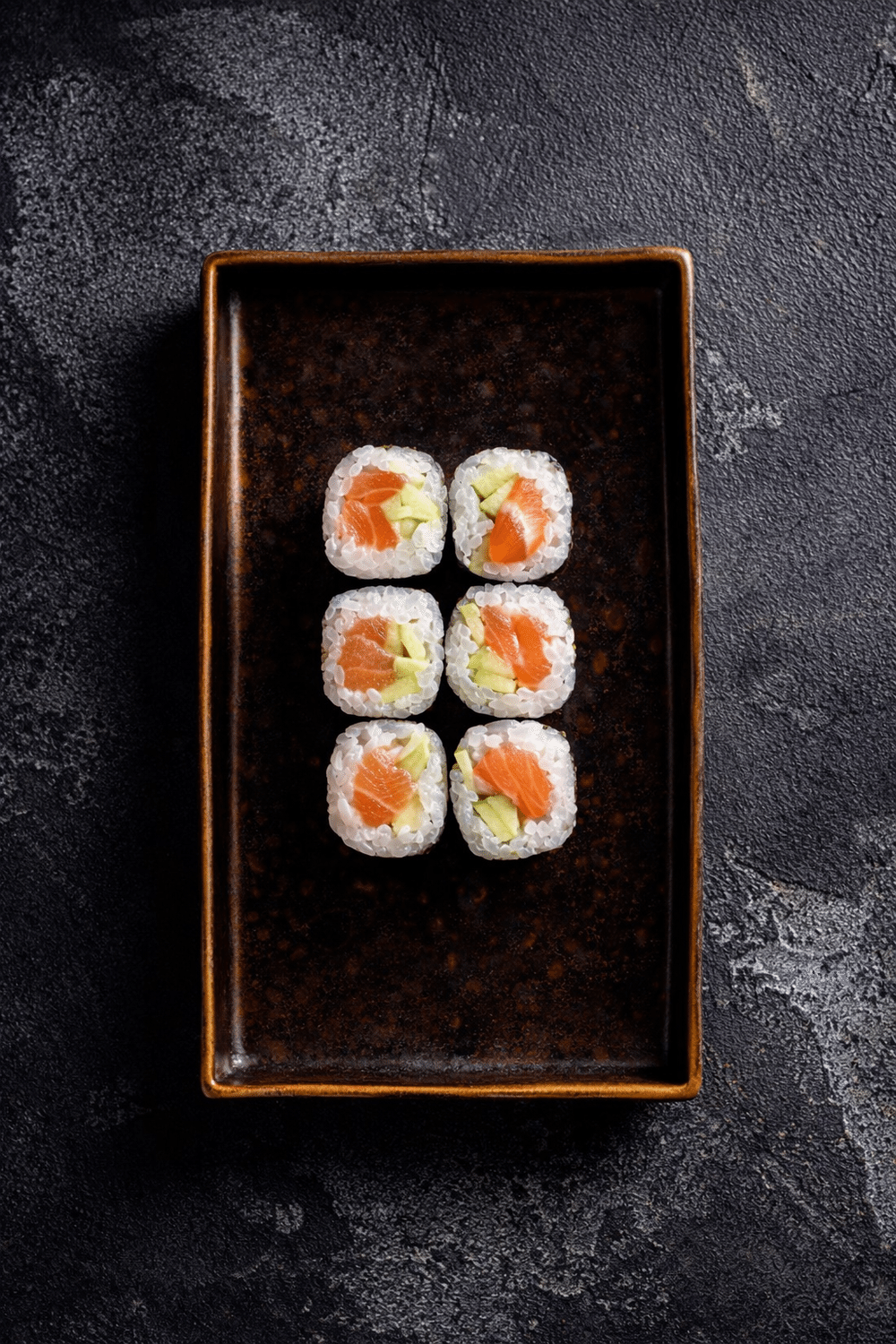 Острый лосось со сливочным сыром, авокадо и огурцом