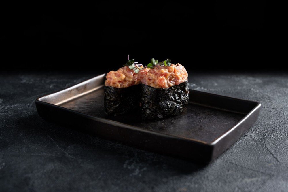 Горячий ролл с креветками, острым тунцом и сливочным сыром