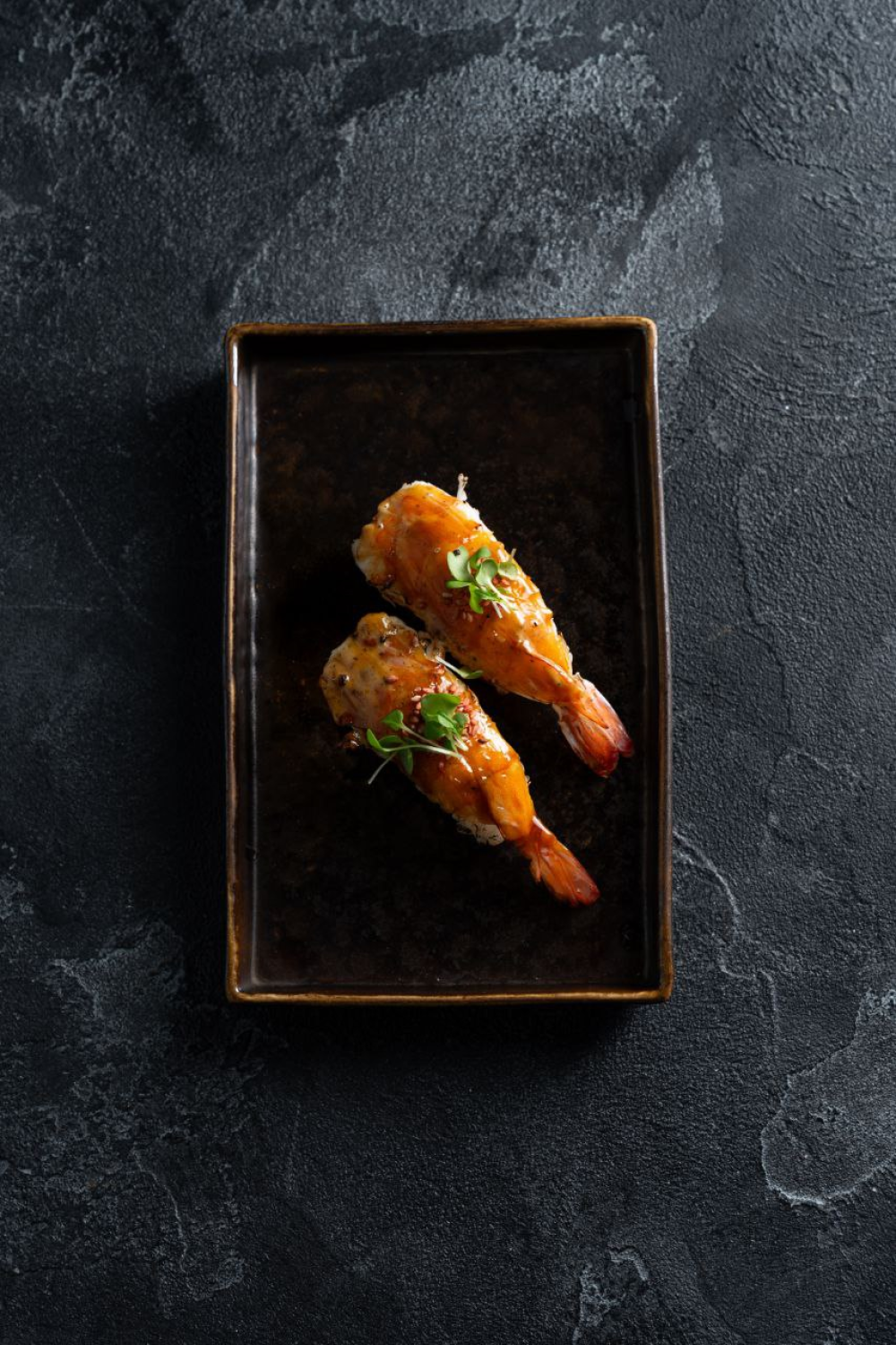 Горячий ролл с креветками, острым тунцом и сливочным сыром