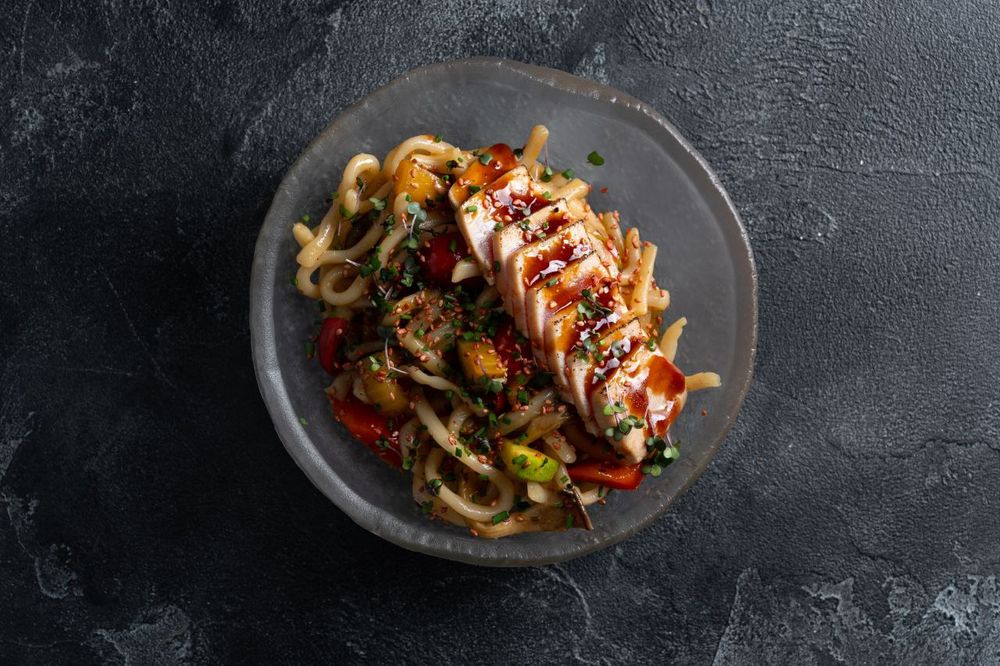 Удон с тунцом-татаки и овощами в соусе Пад-Тай