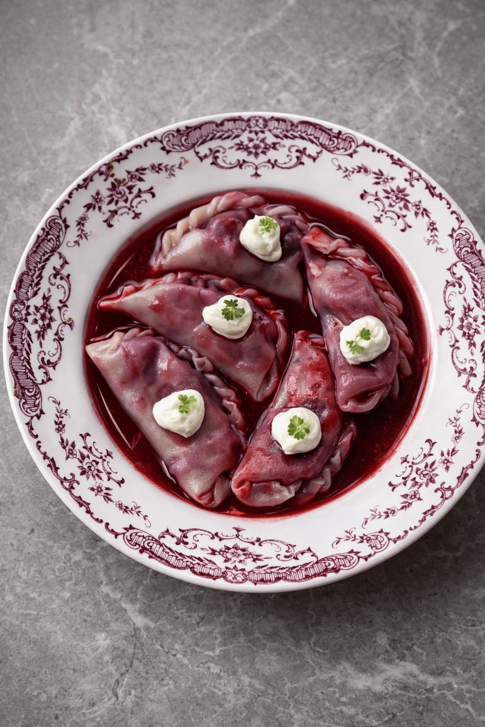 Вареники с вишней и муссом из рикотты